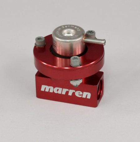 One of the lightest and smallest regulators on the market. Single inlet and outlet, fuel pressure is adjustable from 50 to 75 PSI. 1:1 rising rate, boost compatible. Comes with -6AN inlet/outlet fittings. This type of Marren designed,and engineered, fuel pressure regulator is used in Grand-Am DP, Grand Am Continental, and ALMS Porsche race cars and now IMSA. Call for current price.